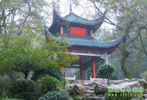 愛晚亭位于岳麓書院后青楓峽的小山上,八柱重檐,頂部覆蓋綠色琉璃瓦,攢尖寶頂,內柱為紅色木柱,外柱為花崗石方柱,天花彩繪藻井,蔚為壯觀。清乾隆五十七年(公元一七九二年)山長羅典所建。原名“紅葉亭”,又名“愛楓亭”。后據唐代詩人杜牧《山行》而改名為愛晚亭,取“停車坐愛楓林晚,霜葉紅于二月花”之詩意。