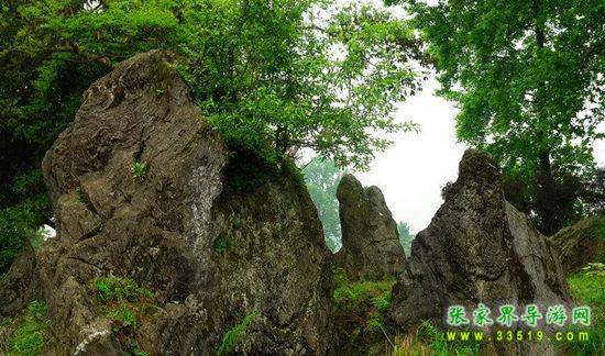 關(guān)田山苗寨有一片古樹林以及一堆怪石,就是《血色湘西》的外景地之一,大家可能記得有一段鎖師長勸穗穗親一下即將上戰(zhàn)場的孫胡子的戲,就是在這個地方拍的。這里生長的樹木,都有幾百年的樹齡。苗族信仰萬物有靈,崇拜自然,崇拜物有巨石(怪石)、巖洞、大樹、山林等。所以,離公路這樣近的地方,都沒有被明顯破壞。而您一路所見的地方,很少有這樣稍大一些的樹木了。苗家的傳說中,如果哪家小孩子命太硬,父母壓不住,小孩會體弱多病,容易夭折,就通過認(rèn)樹神為父母,在古樹上貼上紅紙鞋,寫上小孩子的生辰八字,認(rèn)為在樹神的照料下,小孩就容易長大了。