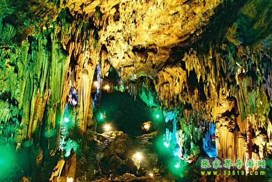 “十里畫廊”里有林海茫茫,古木參天,濃蔭蔽日石呈雪色的“林海雪原”;有聳立的雪山,朵朵雪蓮含苞欲放,一派北國風光的“冰山雪蓮”;有古樹叢生,藤攀葛附,荊棘四布的“西南叢林”;有奇險陡峭,高聳壁立,鬼斧神工的“華山險道”;有溪水潺潺、良田千丘,農家隱約,恰似男耕女織的“躬耕桃源”;有景致逼真的鑿橋、蘇堤、三潭映月等構成的“西湖小景”;有一座溶巖透明、高大雄偉、連天接地、玉柱晶瑩的華麗殿堂,殿堂里矗立著一群可以演奏出七個音符的石壁的“殿堂琴音”;有壁畫8幅,佛像仙人,百態(tài)千姿,栩栩如生的“敦煌石窟”;……