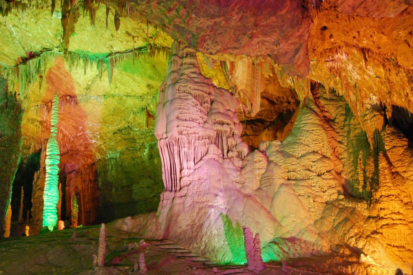 “天堂”精彩紛呈,美不勝收,,有大的景點32處。溶性碳酸鹽巖在漫長的歲月里,變幻出多姿百態(tài),豐韻萬千的眾多造型,為“天堂”造就了美妙絕倫的意境。“南天門”高聳入云,“仙女出浴”百媚千嬌,“御筆天書”維妙維肖,“凌霄殿”虛無縹緲,“玉樹瓊花”繁花似錦,“逍遙宮”如詩如畫,“瑤池”銀波蕩漾,“紫宵宮”三門雄關,“百鳥朝鳳”令人神往,“廣寒宮”寬闊空寂,……“天堂”面積5000多平方米,除了32處大景點,還有浩如星辰,不勝枚數的眾多小景點。它們一起構成了“天堂”那峰回路轉、光怪陸離,既寬闊幽遠,又雄偉莊嚴,且瑰麗奇妙的無邊美景。