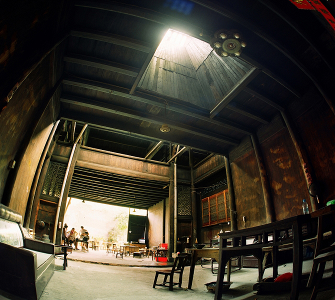 院內(nèi)廂房按家室的輩分依次居住。廂房的木窗雕龍刻鳳,每一板雕刻都是一個美麗的傳說。其中《梁祝》、《天仙配》、《蚌殼燈》、《彩龍船》、《鼠叼葡萄》、《老鷹抓雞》等雕刻更是入木三分,惟妙惟肖。樓上則主要用于囤積貨物,擺放雜物、晾曬衣物等。后側建有伙房和廁房,院落后部則是花園,花園的盡頭緊連著河邊的私家碼頭。