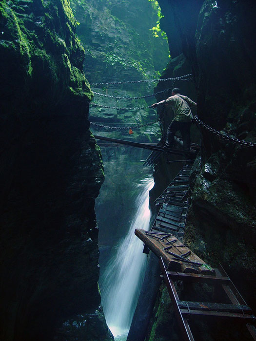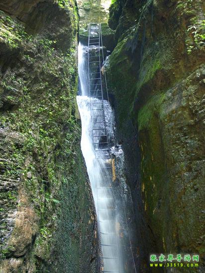 坐龍峽擁有中國第一條特種游道。所有游道均建于峽谷深處,依山取勢,既經(jīng)細心雕琢聽卻又渾然天成。粗樸的板栗木棧道,可以讓你零距離的親近那一潭碧幽、聽聞山泉叮咚;精巧的跳墩,可以讓你媳戲流泉、觸感溪瀑;原質的石坎道,讓你不得不調(diào)動全部的身心能量悉心攀援、感悟峽谷;有驚無險的鐵梯,讓你伴著腳下轟鳴的溪水,在驚怵中體味一份快慰。 出口出的土家山寨,保留了古樸獨特的生活習俗。一塊臘肉就一口醇香的“苞谷燒”會讓你洗去所有的疲憊,在輕松中憨厚的主人向你講述過去強人出沒的故事