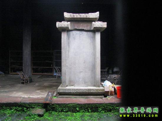 土司德政碑立于司城衙署遺址左側,由青石雕鑿而成。碑高2.74米,寬1.2米,腹背刻字,上有石帽蓋頂,旁扶石柱。此碑是清康熙五十二年(公元1713年)2月永順土官為永順等處宣慰使彭泓海歌功頌德而建。碑頭篆書“甘棠遺愛”四字。正碑兩側有一對聯(lián):“一片石銘恩德厚,千秋歌頌山河新”。正中刻有“欽命世鎮(zhèn)湖廣永順等處軍民宣慰使司宣慰使都督府致仕恩爵主爺中涵德政碑”。碑文記述了所轄58旗、380洞軍民懷念彭泓海之德政以及“嘗聞恩可結民心,不能使民心之不忘記,功可顯當時,不能使后世之取法”的土司統(tǒng)治信條。