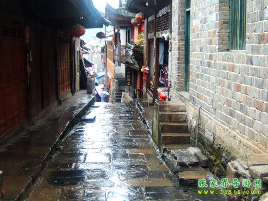 古鎮(zhèn)石板街遠(yuǎn)遠(yuǎn)望去,總感覺(jué)芙蓉鎮(zhèn)五里青石板街就像一本線裝古籍的書(shū)脊,書(shū)頁(yè)被上蒼之手打開(kāi),靜謐而又穩(wěn)重地?cái)傇谟纤舆叄菚?shū)頁(yè)上凌空的吊腳樓和發(fā)生在樓里樓外的悲歡離合便隨歲月而動(dòng),演繹出許多鏗鏘溫馨、跌宕起伏的故事來(lái)……