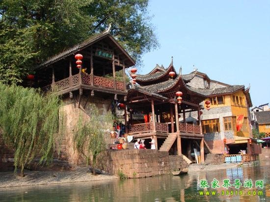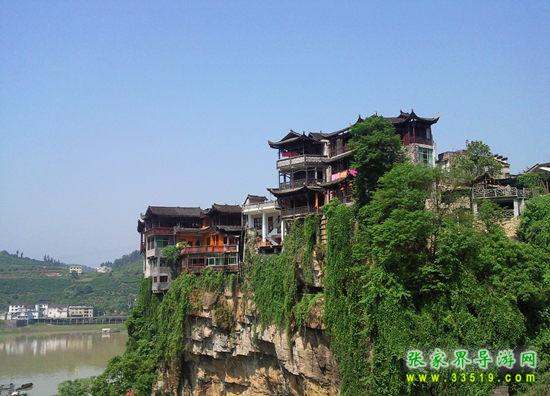 芙蓉鎮(zhèn)不僅是一個(gè)具有悠久歷史的千年古鎮(zhèn),也是融自然景色與古樸的民族風(fēng)情為一體的旅游勝地,又是猛洞河風(fēng)景區(qū)的門戶、一個(gè)尋幽訪古的最佳景點(diǎn)。四周是青山綠水,鎮(zhèn)區(qū)內(nèi)是曲折幽深的大街小巷,臨水依依的土家吊腳木樓以及青石板鋪就的五里長(zhǎng)街,處處透析著淳厚古樸的土家族民風(fēng)民俗,讓游人至此贊不絕口,留連忘返。胡績(jī)偉先生游覽猛洞河和王村以后作詞贊道:“武陵山秀水幽幽,三峽落溪州。懸崖壁峭綠油油,悠悠蕩華舟。烹鮮魚(yú),戲靈猴,龍洞神仙游,芙蓉古鎮(zhèn)吊腳樓,土家情意稠。”