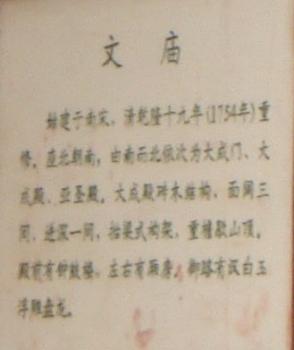 廟前面有學宮坪,亦名學坪,坪南端有大明壁。廟宇紅墻黃瓦,氣勢宏偉。正門曰奎星門,前院左右各植檜樹,常年翠綠,散發(fā)幽香??情T內(nèi)有月形泮池,池周護以石欄。泮池附近有石坊三座,正南石坊匾額鐫有“斯文在茲”四字,東西兩坊貫通街衢。通過石坊便是大成門。進門左右是飛檐綠瓦的鐘鼓亭。大成門通向大成殿,有石鋪甬道直抵大殿臺基。臺高一米,全系石塊疊成。臺階分左右兩道,中有石雕盤龍,綴以云海波濤,栩栩如生,躍然石上。大成殿為歇山式重檐結(jié)構(gòu),周圍有16根圓石柱,內(nèi)外枋、檁、藻井、斗拱、扇梧均五彩施繪,黃瓦飛檐,蔚為壯觀。殿后有亞圣殿,與大成門、奎星門前后襯應(yīng),更顯出大成殿主體的雄偉。