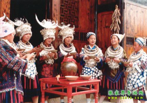 土家人叫槽門,是居住在一個院落里的土家人公用的門。每逢喜慶的日子,都要在這里舉行攔門儀式,以迎接高貴和尊敬的客人。按土家風(fēng)俗,進(jìn)槽門要對歌喝酒,如果客人對歌能勝,就輕松入門,如客人對歌輸了就得喝攔門酒后入門。喝攔門酒已成為一種迎賓的方式。