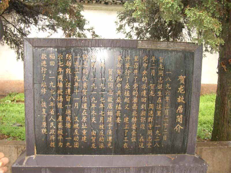賀龍?jiān)獛洺錾诤鲜?a class="insidelink" href="http://www.235esc.com/" title="張家界">張家界市桑植縣。桑植縣的人民為紀(jì)念這位偉人,在他洪家關(guān)故居的基礎(chǔ)上建立了賀龍紀(jì)念館。賀龍是新中國開國元?jiǎng)住⑹笤獛?、新中國的領(lǐng)導(dǎo)人,他一生奮斗,出生入死,為新中國的誕生和祖國的建設(shè)做出了卓越貢獻(xiàn),他不僅是桑植人民的優(yōu)秀兒子,更是整個(gè)中華民族的杰出英雄。