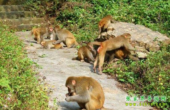在十里畫廊盡頭。這里怪石嶙峋,林木蔥籠,常有三五成群成百上千只猴子在此會集,故稱猴子坡。