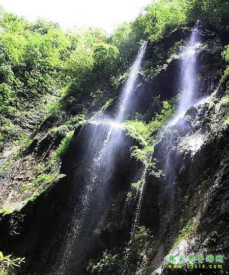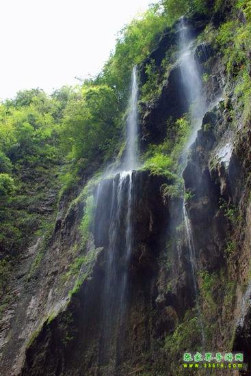 【珍珠墻】過(guò)了神泉橋,請(qǐng)大家留步,做一個(gè)短暫的停留。請(qǐng)大家看,我們的面前,石壁之上,生長(zhǎng)著很多植物,很多草類(lèi),山上的泉水沿著石壁,以均勻的流量漫流下來(lái),在這些草葉上、枝枝蔓蔓上形成了一個(gè)個(gè)潔白晶瑩的水珠,大家看像不像珍珠?游客朋友們都將這堵石壁叫做珍珠墻,掛滿珍珠的石墻啊。