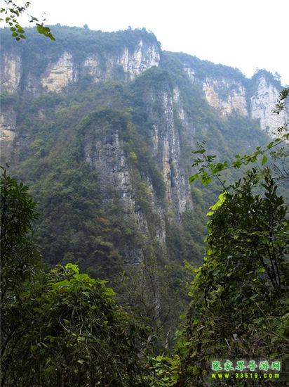 【吳王坡】來(lái)到這里以后,面前的絕壁逐漸開(kāi)闊,視野角度也慢慢放大。從我們這里平視出去,就可以看到對(duì)面絕壁的全貌,從山巔到溪谷的底部,一覽無(wú)余。對(duì)面的絕壁后面,就是著名的吳王坡村。相傳,李自成帶著大順帝的光環(huán),敗走北京城以后,轉(zhuǎn)戰(zhàn)秦嶺,先后渡過(guò)黃河和長(zhǎng)江,一路南下,來(lái)到了湘西,最后還是回天無(wú)力,只有兵敗歸隱,在緊鄰我們張家界市的常德市石門(mén)縣的夾山寺皈依佛門(mén)。對(duì)面的吳王坡村,就是傳說(shuō)中“沖冠一怒為紅顏”的吳三桂追殺李自成起義大軍,和起義軍進(jìn)行生死決戰(zhàn)的古戰(zhàn)場(chǎng)之一。傳說(shuō)吳三桂在此大勝李自成起義軍,殺死起義軍幾千人,是吳三桂一生之中的“惡仗”之一。當(dāng)?shù)氐?a class="insidelink" href="http://www.235esc.com/fengqing/" title="土家">土家人后裔,根據(jù)這段歷史上的傳說(shuō),將村子的名字叫成了“吳王坡”。吳王坡村的名字又叫吳亡坡,這個(gè)“亡”是“滅亡的亡”,是說(shuō)吳三桂雖然此戰(zhàn)勝利以后,坐鎮(zhèn)云南,被封為“平西王”,最后還是在“三藩叛亂”之中走向了滅亡。而滅亡的因緣和轉(zhuǎn)折,在當(dāng)?shù)乩习傩湛磥?lái),就是這里,就在吳王坡。所以,吳王坡又有了“吳亡坡”的名字演繹成分。
