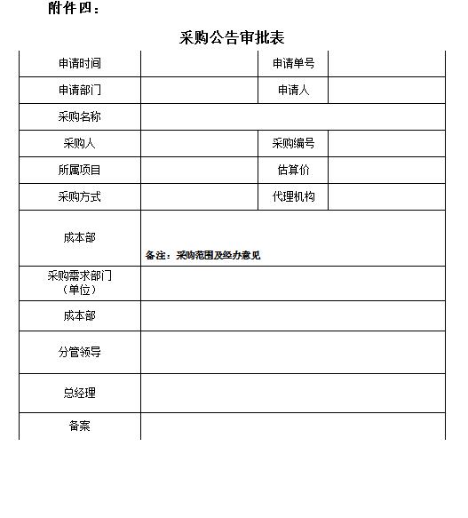 附件四:《采購公告審批表》