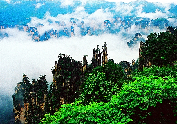 | 下 午: | 中餐后游玩世界自然遺產(chǎn)的核心---【袁家界景區(qū)】:(包含電影《阿凡達》中“哈利路亞山”原型“乾坤柱”、天下第一橋、九天玄梯、乾坤柱、連心橋、中韓友誼亭、神龜問天、迷魂臺等景點) 。袁家界,是張家界森林公園山頂觀景最為奇特壯觀景區(qū)之一,勝于黃石寨和天子山景區(qū)…之后便乘坐大約20分鐘的環(huán)保車可到大觀臺住宿地 |