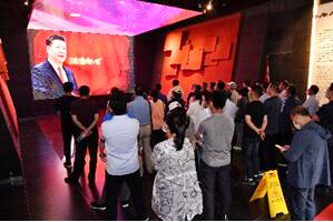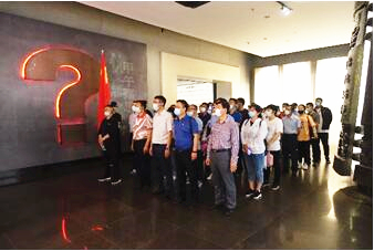 集團(tuán)黨員一起穿越了120多年的時(shí)光隧道,共同回顧了甲午戰(zhàn)爭(zhēng)以來中華民族救亡圖存的曲折歷程,深刻理解了歷史和人民為什么選擇共產(chǎn)黨、為什么選擇社會(huì)主義等重大話題,進(jìn)一步增強(qiáng)了對(duì)社會(huì)主義的理論自信、道路自信、制度自信、文化自信。面對(duì)黨旗,集團(tuán)黨委副書記孫曉東同志帶領(lǐng)全體黨員一起重溫入黨誓詞:“我志愿加入中國共產(chǎn)黨……為共產(chǎn)主義奮斗終身,隨時(shí)準(zhǔn)備為黨和人民犧牲一切,永不叛黨?!?/span>鏗鏘有力的宣誓聲久久回蕩在館內(nèi),深深感染了現(xiàn)場(chǎng)所有人……