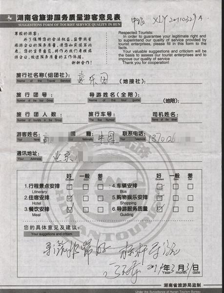 2011年3月22日高小姐旅游質(zhì)量反饋:導(dǎo)游非常好,標(biāo)桿導(dǎo)游