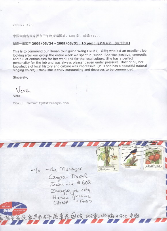 本公司導(dǎo)游,“王莉坤”由于帶團期間出色的講解能力和高尚的人格魅力,贏得了游客們的高度評價。特發(fā)表揚信如下: