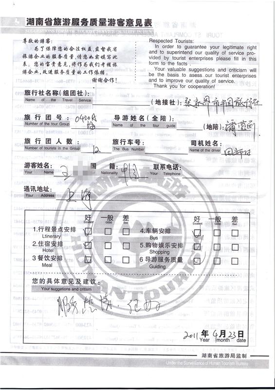 2011年4月23日王小姐旅游質(zhì)量反饋:服務(wù)熱情,很好