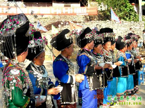 7 在苗王城!滿身銀飾的盛裝苗女會熱情卡歌、攔門禮捧上的是醇美的苗王米酒、青瓦木房里香噴噴的是苗家飯菜、紡車邊老婆婆與編織花帶的少女說的是難懂的苗話、多情黛帕留在英俊小伙臉上的是愛的鍋煙、古樹下迷狂娛神的是神氣的苗老司、赤膊小伙跳的是強(qiáng)悍、狂放的鼓舞、篝火晚會上縱情的是歡歌與笑語、、、、苗王城是迷人的所在!苗王城是醉人的地方!!