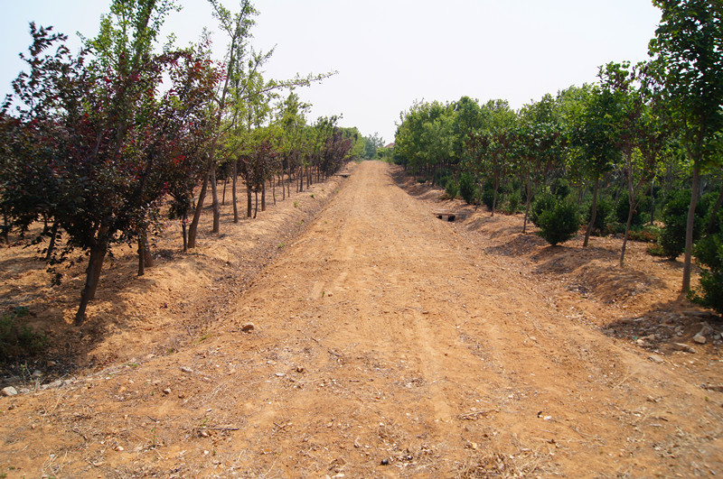 頭頂著烈日,走在140多畝的苗圃間,老顧的腳步輕快而愉悅。他時不時地向我們介紹樹的種類和大小,如數(shù)家珍。遠處的農(nóng)田一片翠綠,而苗木間卻不見一棵雜草。“現(xiàn)在旱得厲害,防火重于泰山,我們一般兩到三天就要鋤一次草?!闭f到鋤草,顧新洪還給我們介紹了他自己發(fā)明的菜刀鋤頭。原來,普通的鋤頭較小,用來鋤苗木間的草不太好用,費時費工,一次偶然的機會,老顧發(fā)現(xiàn)菜刀的大小剛好合適,正好他會電焊,就將普通的鋤頭柄與菜刀的刀身焊在一起,結(jié)果,就變成了苗木基地的鋤草神器?!拔铱墒窃囘^的,用普通鋤頭一天連一畝地都鋤不了,用菜刀鋤頭,一天能鋤一畝半呢?!崩项櫟靡獾卣f。