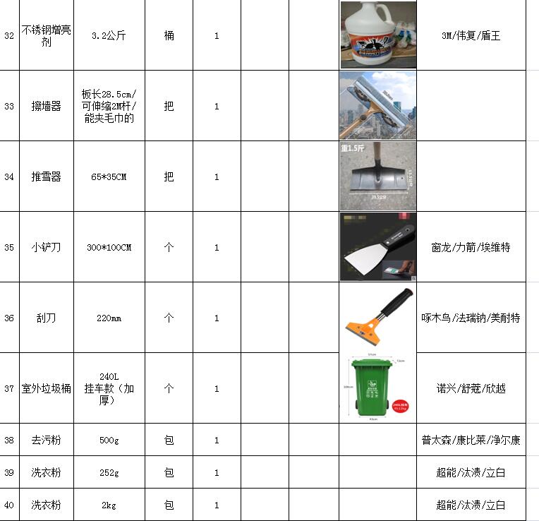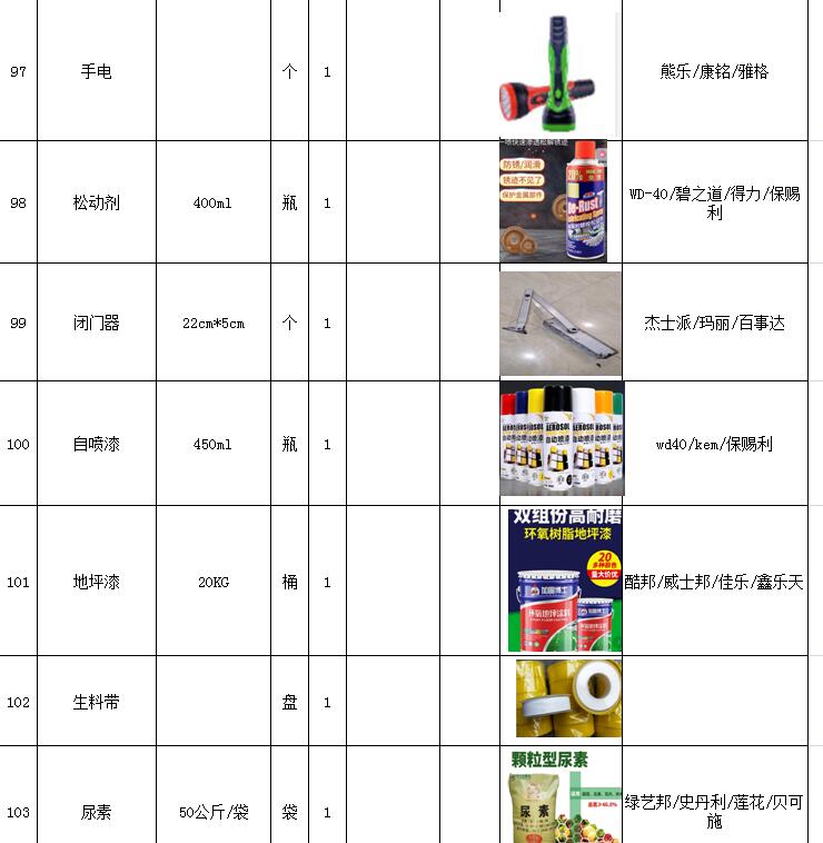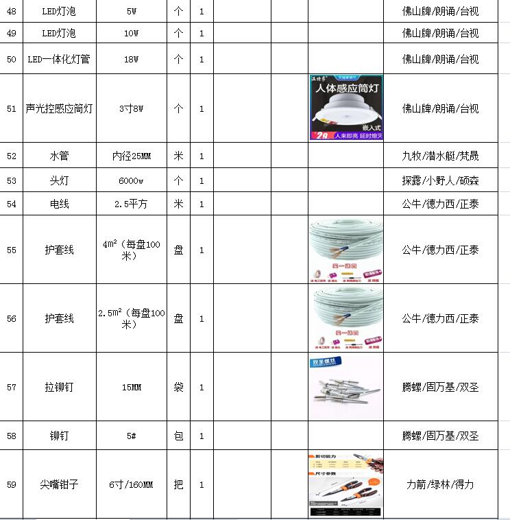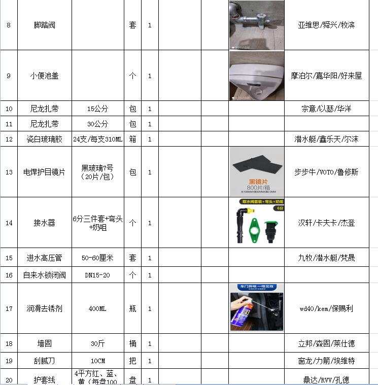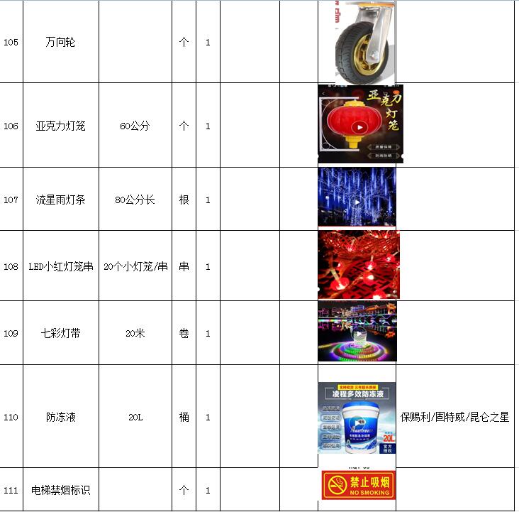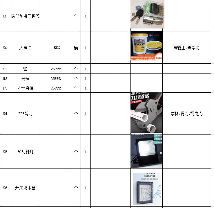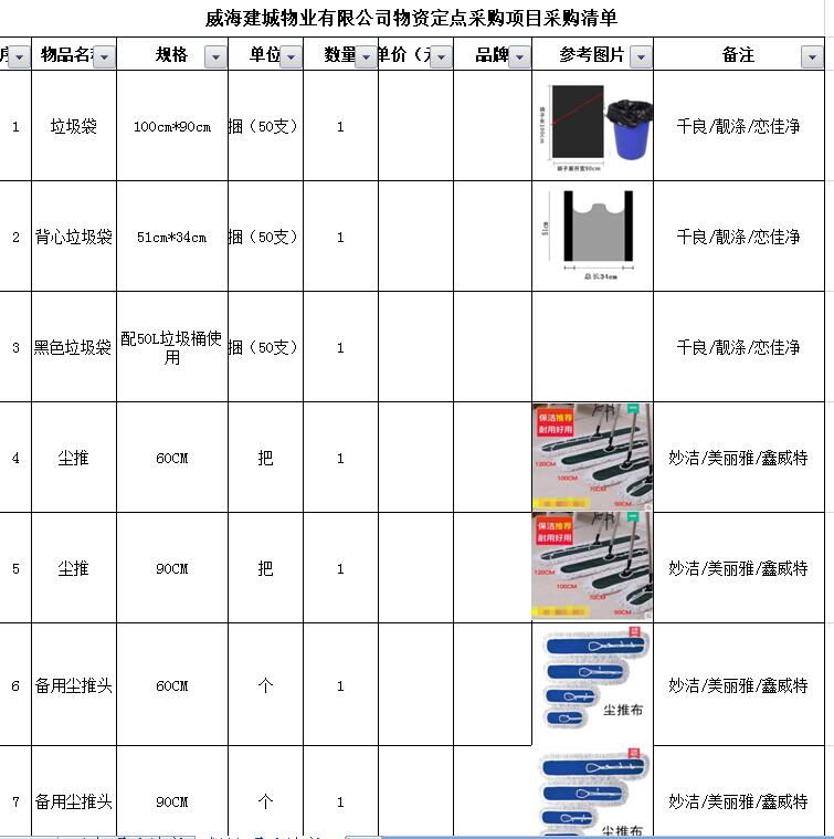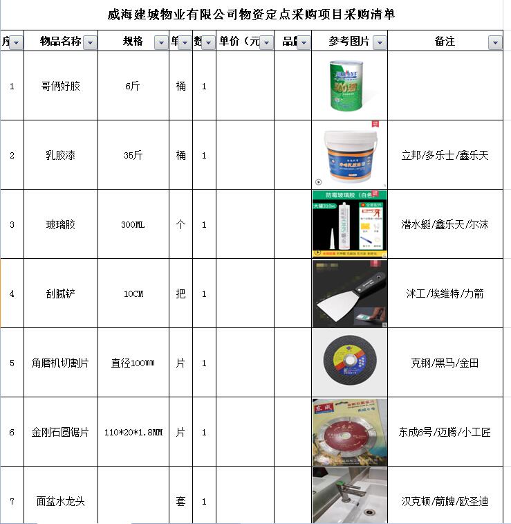 (5)采購內容:威海建城物業(yè)物資定點采購,主要包括五金、水暖管件、保潔、維修、綠化所需物資、應急維修的其他物資等,采購清單詳見附件。